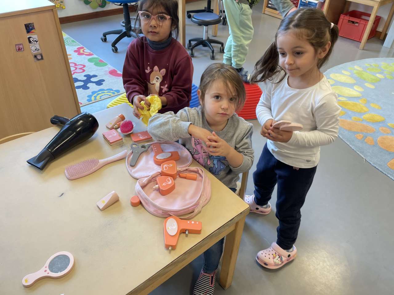 06.01.2026Dans la salle de jeu de rôle, les enfants ont exploré différents métiers : cuisiniers, coiffeurs, enseignants…