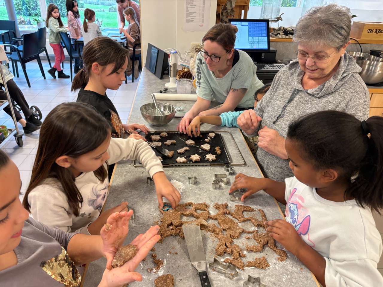 Mat vill Freed, Gedold a Kreativitéit hunn d’Kanner a Senioren Hand an Hand geschafft. Et gouf geknet, ausgestach, gebak a mat vill Léift dekoréiert. D’Zesummenaarbecht tëscht de Generatiounen huet super funktionéiert an d’Resultater konnten sech weisen – a virun allem schmaache – loossen: d’Kichelcher ware ganz lecker an originell dekoréiert.